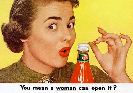 Si tratta di immagini selezionate tra le pubblicità americane su carta stampata (tranne una molto famosa italiana, foto di Oliviero Toscani). L’immaginario che porta questa selezione, è quello dell’immediato secondo dopoguerra, e mostra un rapporto tra donne e uomini che si potrebbe definire “inter-rotto”: la donna piange se ha bruciato la cena (ma per fortuna la birra no, quella non l’ha bruciata, la rincuora il marito), desidera ricevere l’aspirapolvere a Natale, ha bisogno della tequila per “sciogliersi” e le sue parole posso causare così tanti danni da giustificare l’omicidio da parte dell’uomo. E l’uomo? il marito, il compagno? Anch’egli risulta incastrato in un ruolo che è quello dell’uomo efficiente, che regge il peso economico e sociale della famiglia, per cui non può mostrare sentimenti come tenerezza e compassione: è, per definizione dominante. Se la donna ha subito la costrizione/costruzione borghese, così è stato anche per l’uomo, certo, dal momento che la parte maschile della società controlla le leve economiche, politiche ed intellettuali, possiamo dire che ha la responsabilità maggiore nel determinare il minore peso sociale della parte femminile della società.
