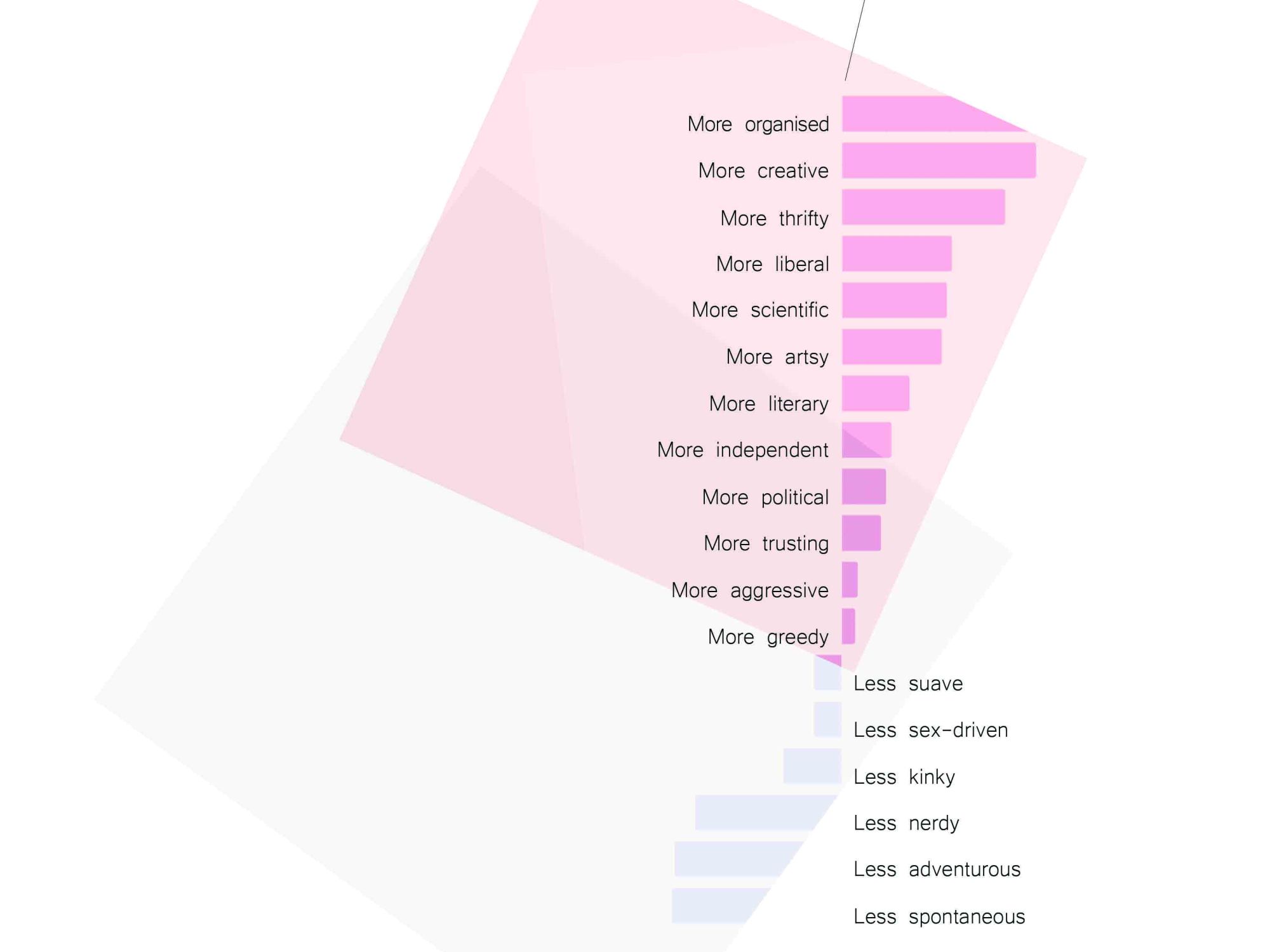 Usually this chart on Ok Cupid comes in blue. The personality of its users is worked out based on an average user, and so the personality of each of them is not true in itself, but only in relation to a hypothetical ‘normal’ user, that I called: the Average Blue.