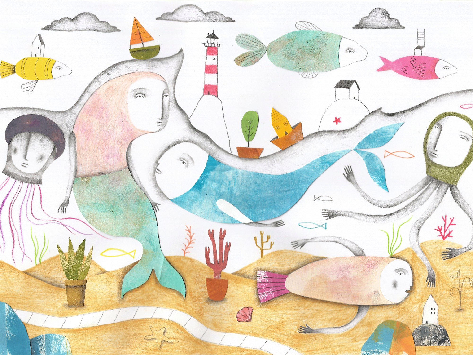 Ho usato il collage, matita e pastelli colorati.