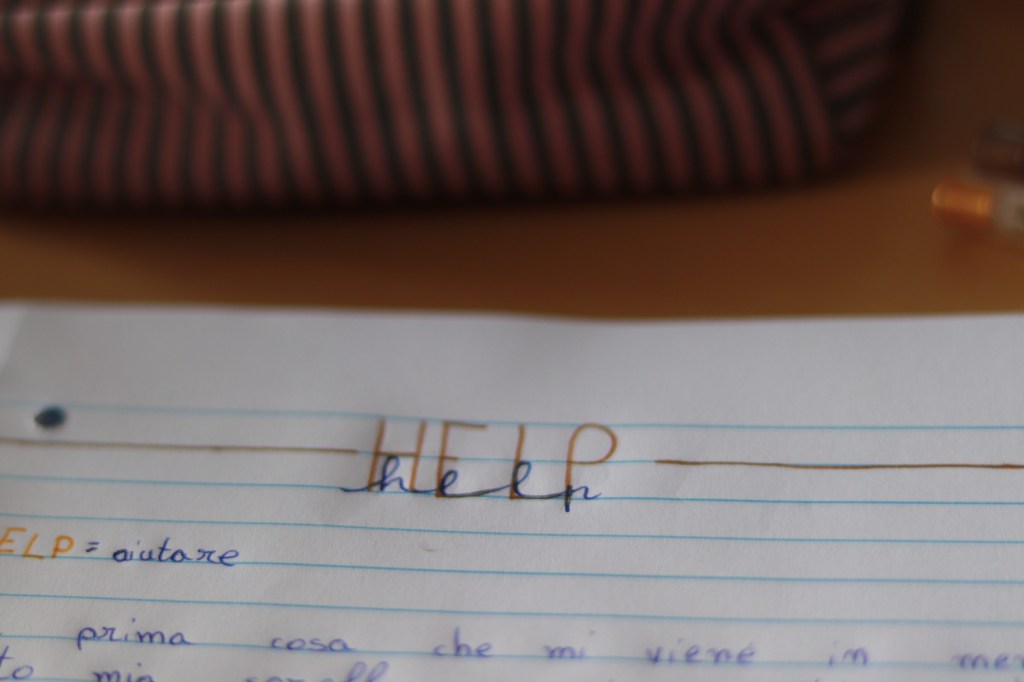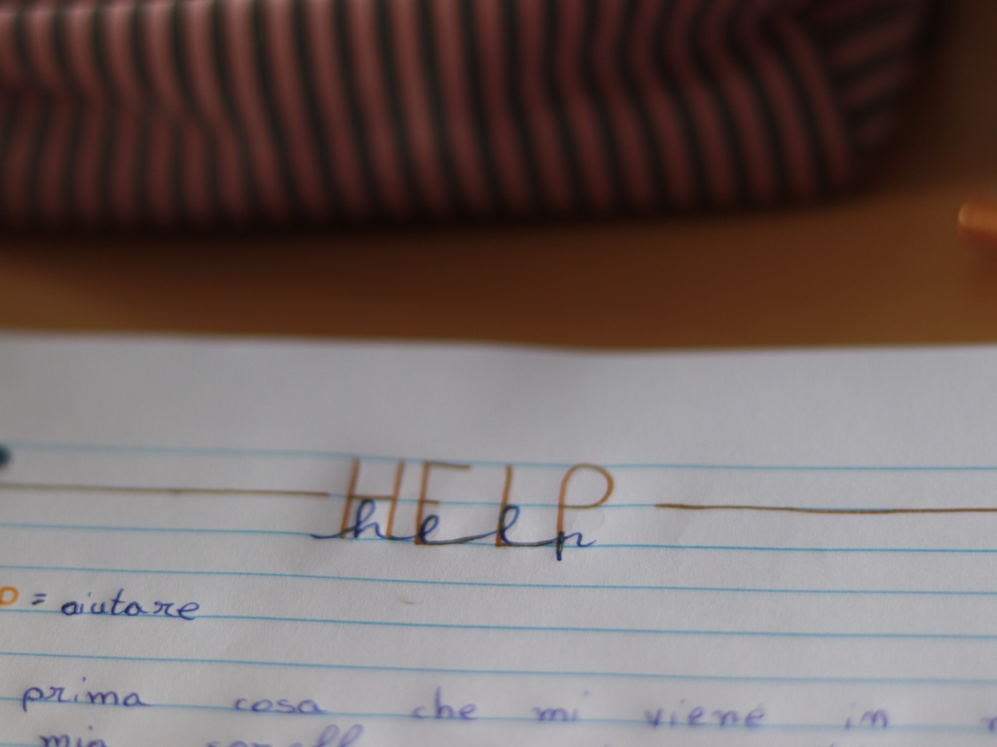 La parola Help torna su tutti i margini dei miei fogli: la scrivo spesso, ma in particolare durante le ore di grammatica e inglese. Che purtroppo non capisco quasi mai.