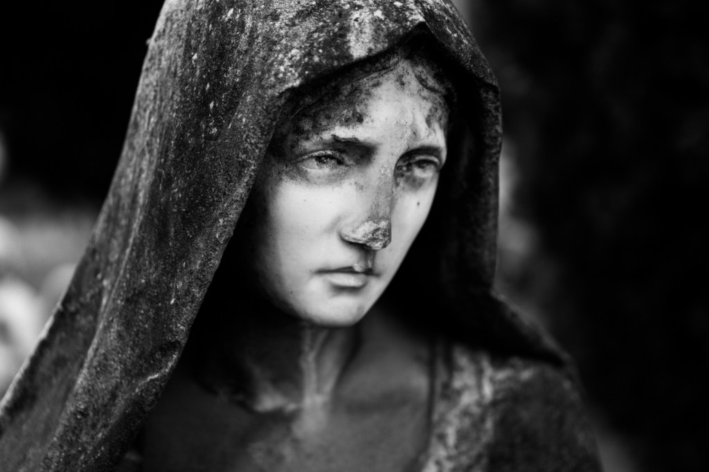 Contatto Lisa Martignetti, che collabora con diverse imprese di pompe funebri a Bergamo per la cura dei defunti e i rapporti con le famiglie. Non è un’eredità subita: Lisa ama il suo lavoro, si definisce “la ragazza dei cimiteri”. Sono luoghi dell’anima, che frequenta fin da bambina: li fotografa anche, e le foto (piene di rara grazia e bellezza) danno voce a quelle che lei chiama “le mie creature”. Angeli, madonne, croci. Volti di pietra che custodiscono la pace di chi non c’è più, ma ha la sua dimensione, il suo posto.