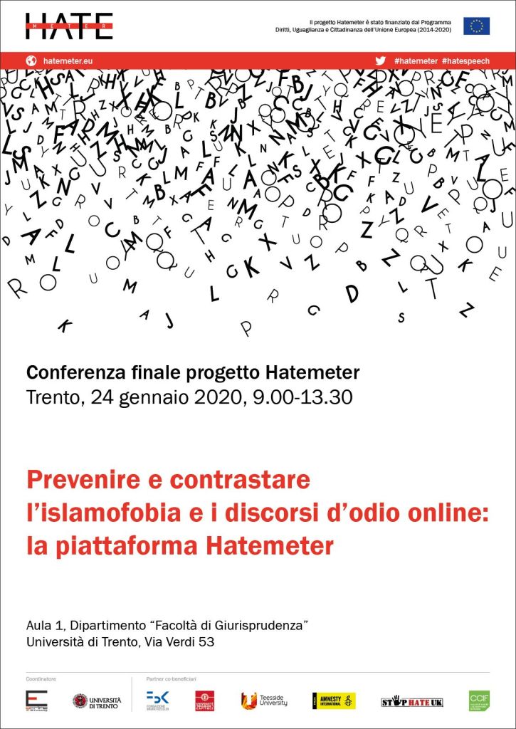 Lo scorso 24 Gennaio all’Università di Trento si è tenuta la conferenza finale del progetto Hatemeter “Prevenire e contrastare l’islamofobia e i discorsi d’odio online: la piattaforma Hatemeter“.