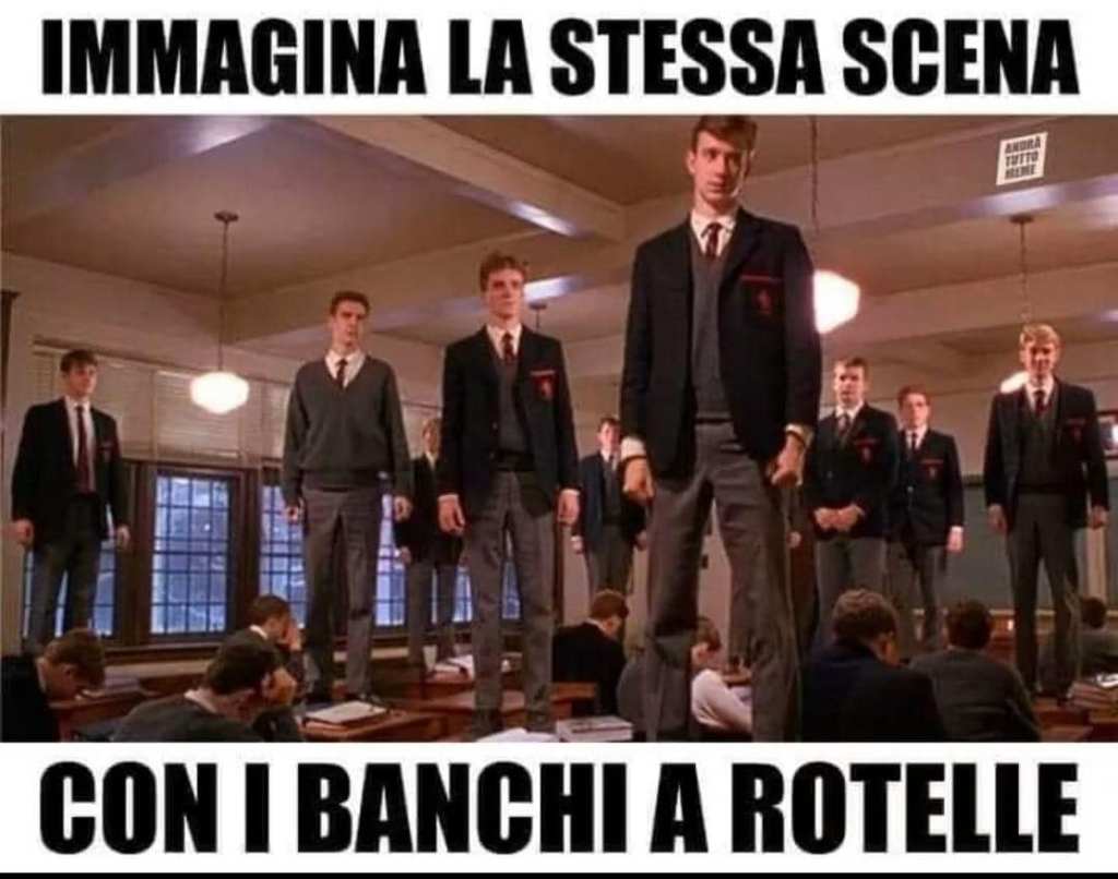 Quindi si incomincia. Sì, ma quando? Da regolamento esigo una mail con almeno una settimana di anticipo, previo sierologico, tampone e tso per una ripresa serena. Io il tampone non lo voglio!Io lo voglio!Io faccio pure il vaccino antinfluenzale!Io no!Io sì!Io voglio le classi che entrano dopo!Io quelle che escono prima!Io quelle a zigo zago! Io voglio l’abolizione delle udienze, in tutte le forme e i colori, per precauzione…Io voglio le finestre sempre aperte! Io chiuse, per la cervicale! Io non voglio perdere studenti se dimezzano le classi! Io invece vorrei darti anche i miei! Io voglio la mascherina, il gel, l’aula iperbarica e lo scudo spaziale! E i Termoscanner terminator, ne resterà soltanto uno, immune e sfebbrato! E le riunioni da remoto, sdoganare qualsiasi scenario: parrucchiere, estetista, supermercato, ragù in cottura e allattamento gemellare! Vabbè allora pure la Dad…No