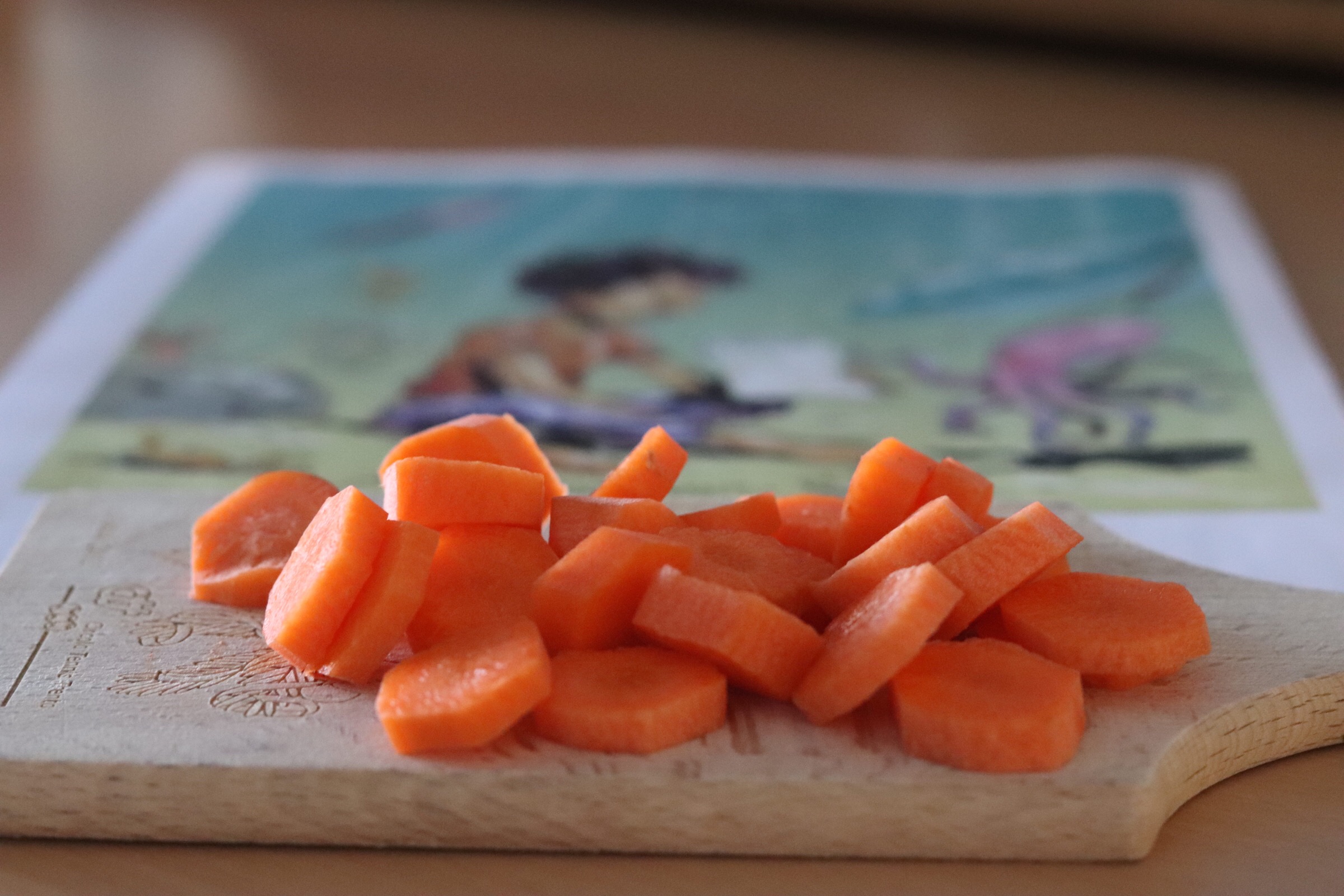 Tristi carote crude di supermercato, che ho affettato davanti ai ragazzi. Poi ho chiesto chi ne volesse una fettina e loro sono venuti quasi tutti alla cattedra: una processione sghignazzante e curiosa. Ho distribuito ostie di carota, come una specie di sacerdotessa sacrilega e un po’ matta.